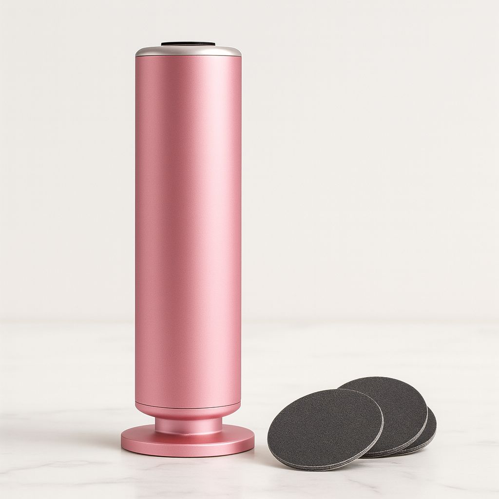 Equipped with a powerful yet quiet motor, it guarantees fast and even results on all areas of the foot. Its ergonomic design and elegant colored aluminum finish ensure a comfortable and secure grip. The abrasive discs are easy to change, offering perfect hygiene and long-lasting use. Its refined design makes it both aesthetically pleasing and efficient, always ready to use.