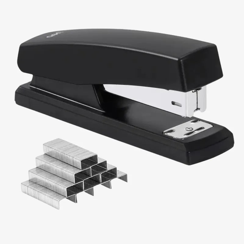 Conçue pour une utilisation régulière, cette agrafeuse permet d’agrafer plusieurs feuilles sans effort. Son mécanisme intérieur en métal assure une performance fluide et constante, tandis que sa forme compacte se glisse facilement dans un tiroir ou sur un coin de bureau.