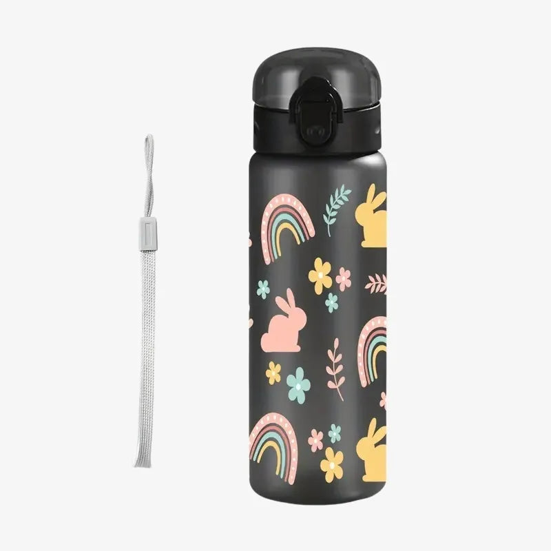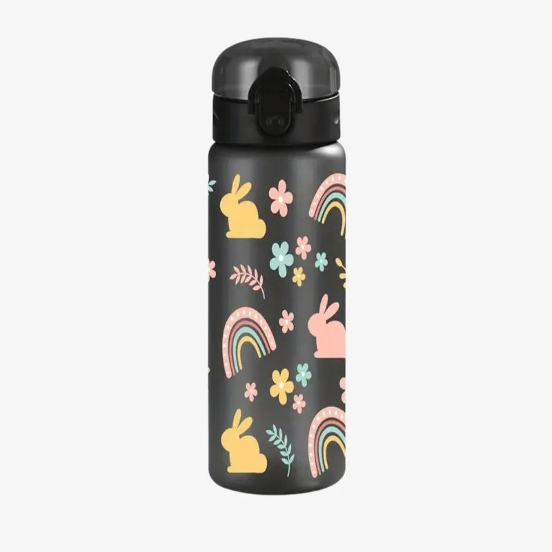 La gourde Bunny Rainbow est une invitation à la bonne humeur. Son motif coloré avec des lapins, des fleurs et des arcs-en-ciel illumine chaque pause boisson. Elle est parfaite pour accompagner les enfants tout au long de la journée avec une touche de fantaisie.