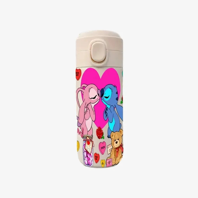La gourde LoveHydra allie fonctionnalité et charme avec son design romantique mettant en scène deux personnages adorables réunis par un grand cœur rose. Colorée et joyeuse, elle séduira les enfants et les fans d’univers mignons qui souhaitent emporter leur boisson partout avec style.