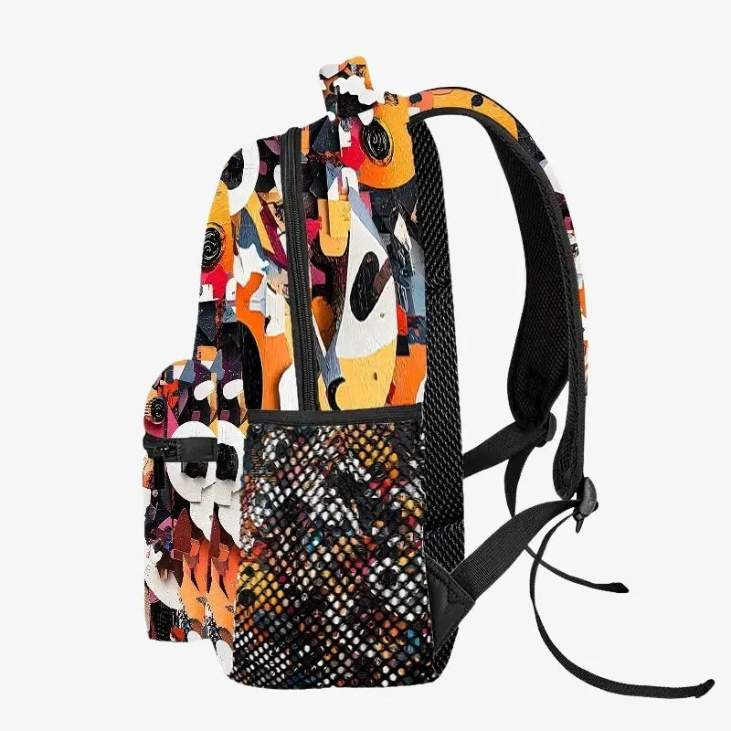 Ne vous fiez pas uniquement à son look déjanté : ce sac est aussi ultra pratique. Il possède un grand compartiment principal zippé pouvant contenir cahiers, livres et ordinateur portable. Une poche avant permet de ranger les petits objets essentiels, et deux poches latérales en filet accueillent gourdes ou accessoires du quotidien.